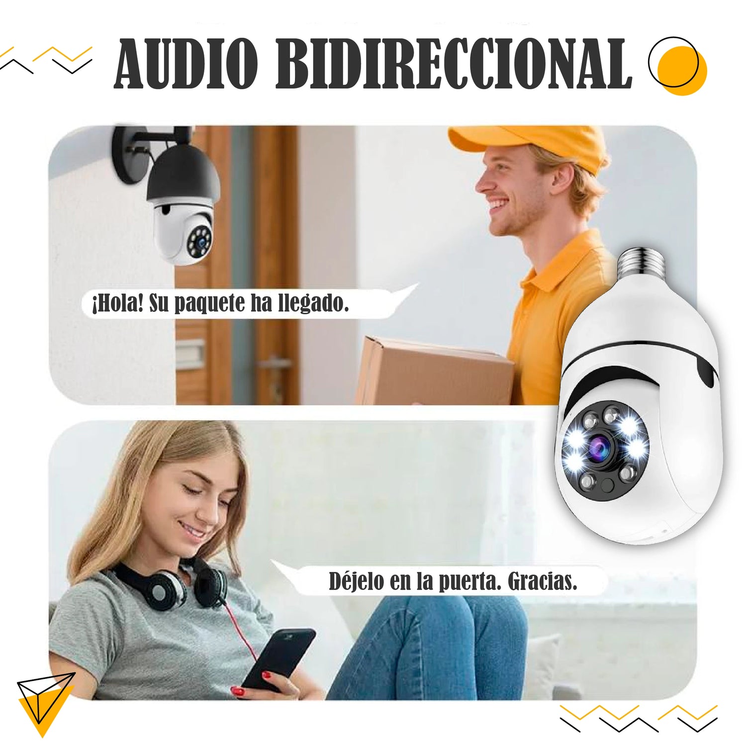 Su amplio ángulo de visión te permite cubrir toda la habitación, evitando espacios inseguros donde alguien podría pasar desapercibido.